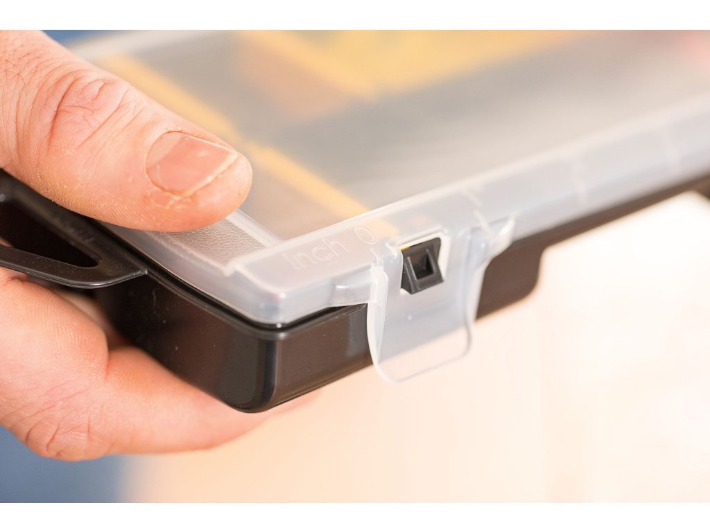 Zavřené víko uzamyká přihrádky a chrání jejich obsah před vysypáním