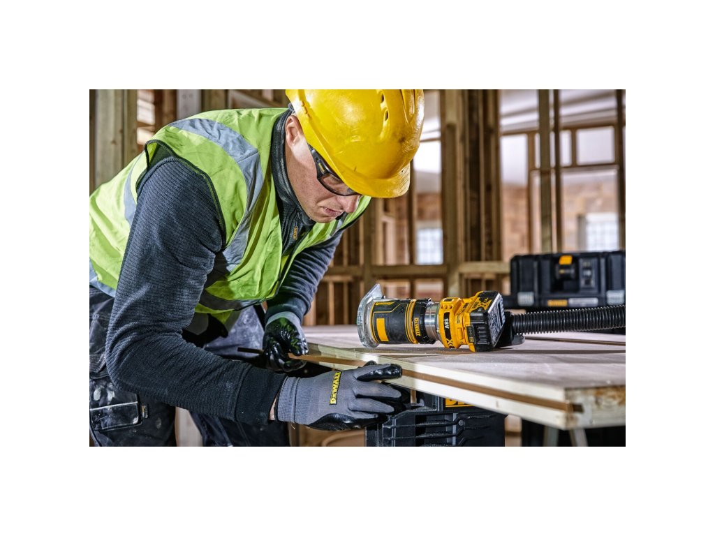 Aku frézka DeWALT kombinující ohraňovací a horní frézku