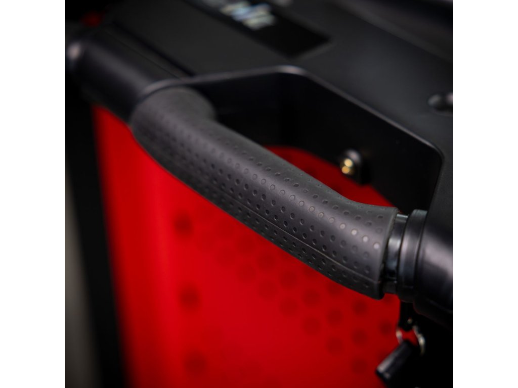 Horní pracovní deska: Horní plocha vozíku je vybavena měkčeným obložením a integrovanými madly, takže slouží i jako odkládací prostor nebo montážní plocha.