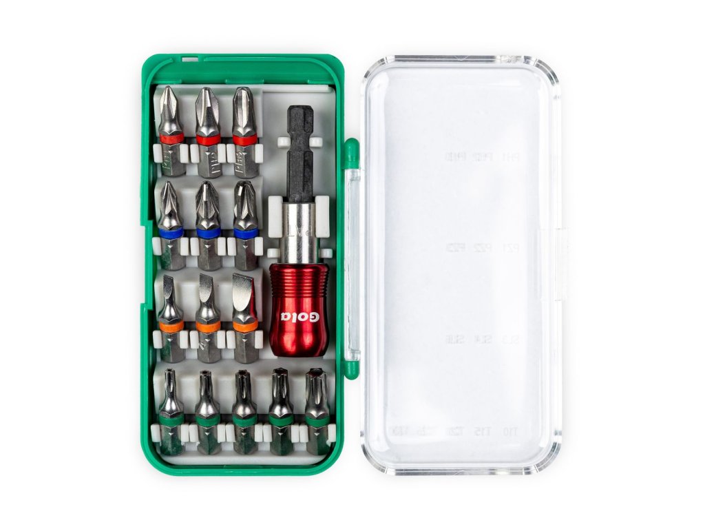 Hledáte šikovnou sadu bitů, která se vejde do každé kapsy a nabídne nekompromisní kvalitu? Gola 060015P je praktický set 14 precizních bitů a magnetického držáku, uložený v robustním plastovém pouzdře. Toto pouzdro je navrženo tak, aby bylo maximálně skladné, lehké a zároveň odolné proti nárazům při každodenním používání v dílně.